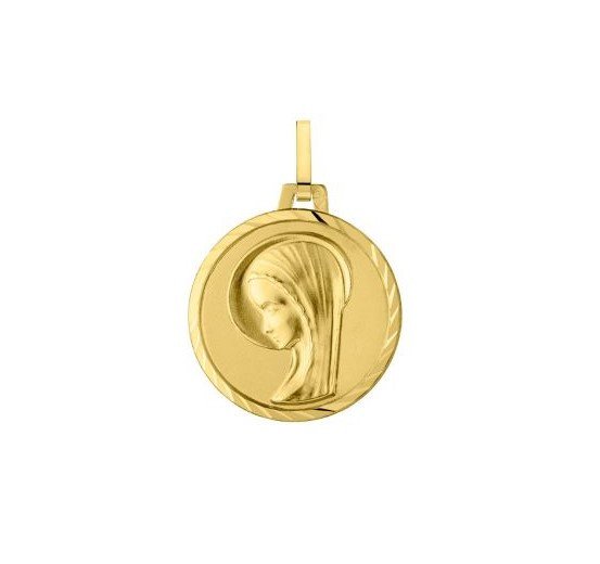 Médaille de la Vierge bord strié en or 18 carats Très jolie médaille de la Vierge Marie de profil, en or massif 18 carats. Cette médaille présente un joli bord strié.Nous vous proposons cette médaille en deux diamètres : 13 mm et 16 mm.La facture de cette médaille est contemporaine et épurée, elle sera un joli cadeau de baptême ou de première communion.CaractéristiquesDiamètres disponibles : 13 mm (0,70g) ou 16 mm (0.95g)Or jaune18 caratsFabrication Française. Associations & Collectivités Vous avez besoin d'une grande quantité (>50) Demander un devis !