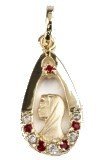 Médaille en plaqué or 18 carats de la vierge en forme de goutte avec zirconium .