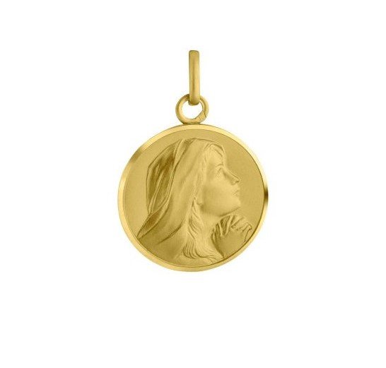 Optez pour cette belle médaille représentant la Sainte Vierge Marie fervente, le visage tournée vers le Ciel et les mains jointes, en prière, réalisée en or 9 carats.