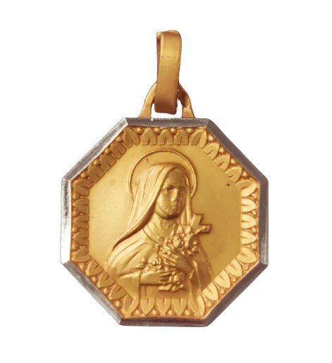 Médaille de Sainte Thérèse octogonale 21 mm en plaqué or