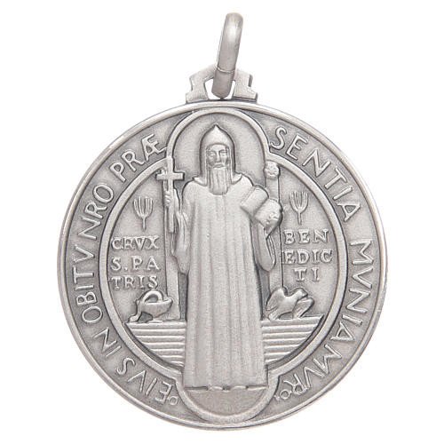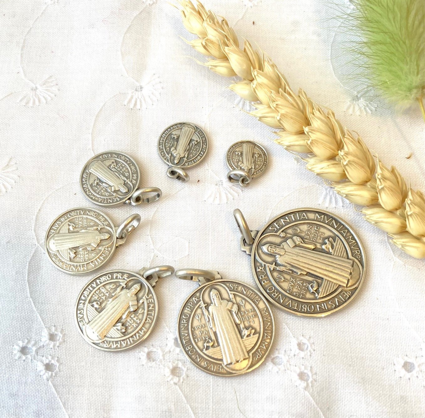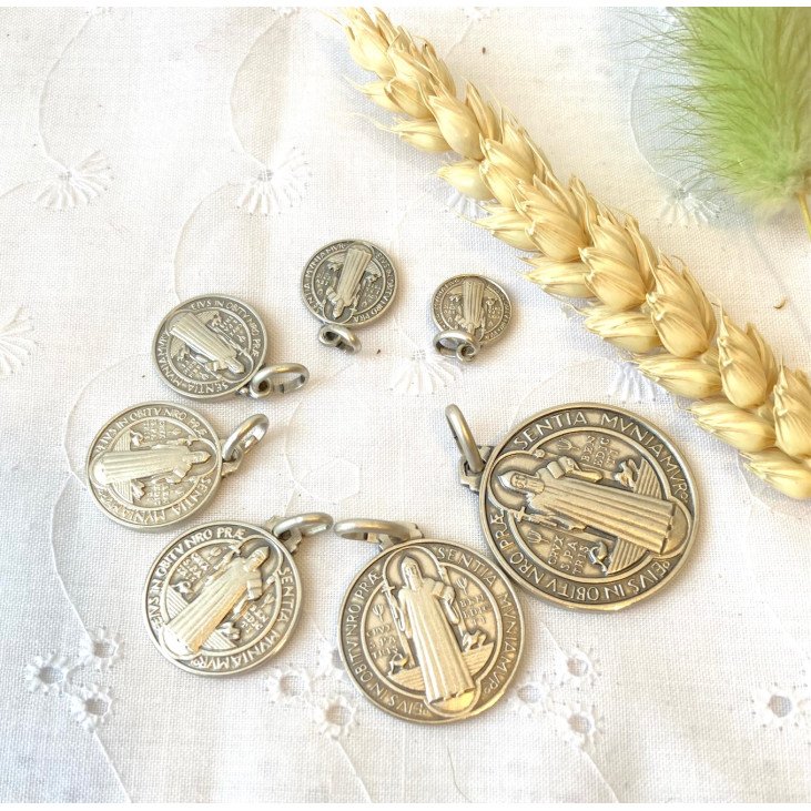 Cette superbe médaille en argent 925/1000 de Saint Benoit possède une gravure au recto, mais aussi au verso ! Vous pourrez retrouvez d'un côté, une représentation de Saint Benoît avec le livre de la Règle Bénédictine à la main gauche et une croix à la main droite. De l'autre, la Croix de Saint Benoît.