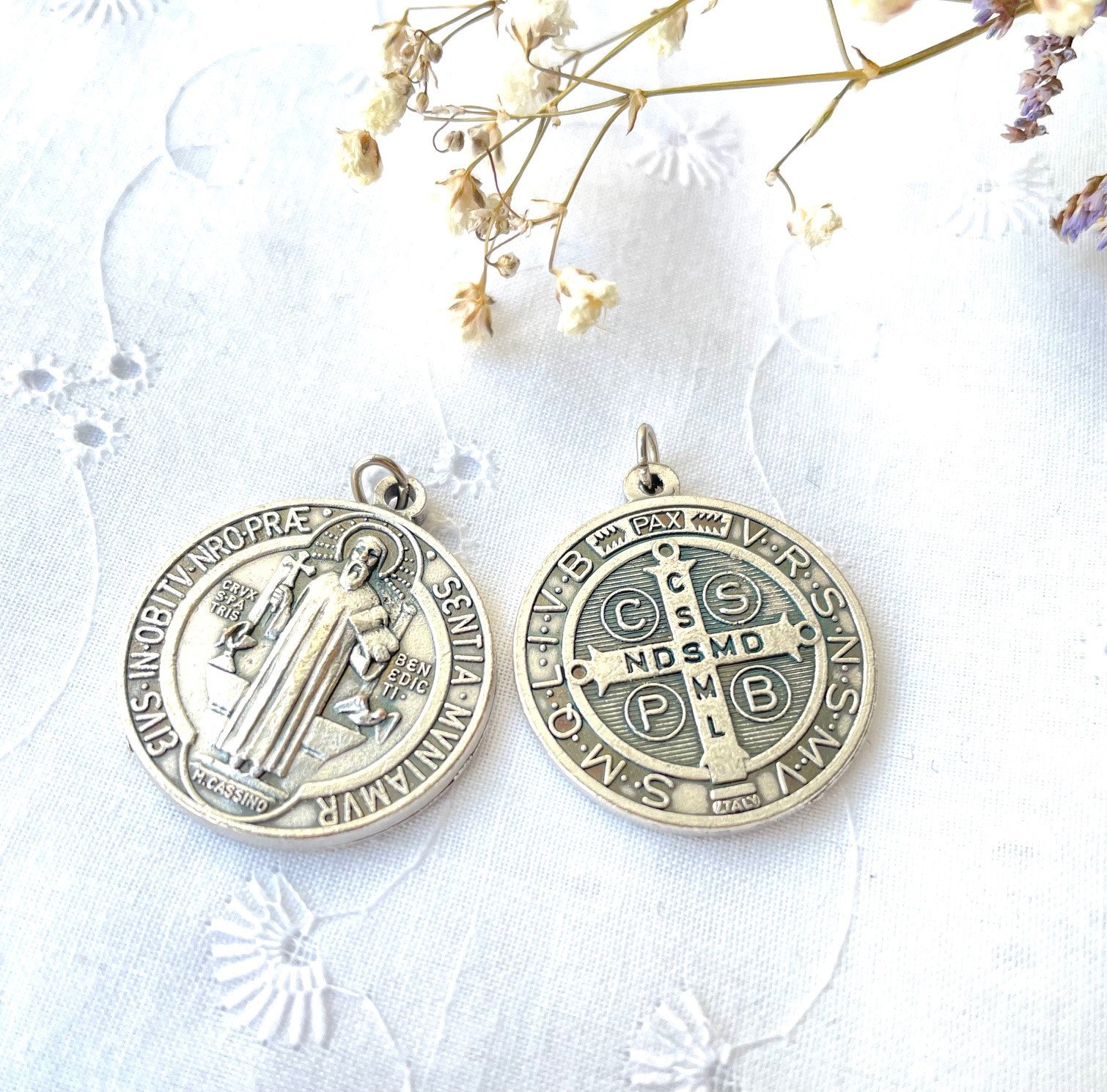 Médaille Saint Benoit - métal argenté - 2.5 cm