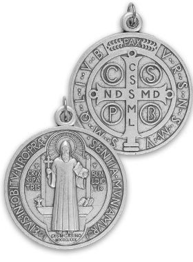 Cette médaille de Saint Benoit est l'une des plus populaire de l'Eglise catholique, après la Médaille Miraculeuse. Elle est utilisée comme recours pour se protéger des puissances du mal. En effet Saint Benoit, fondateur de l'ordre des Bénédictins, est connu pour ses puissantes paroles d'exorcisme, paroles dont les initiales sont inscrites au dos de la médaille. Au recto vous trouverez l'effigie de Saint Benoit dans son habit de moine, tenant dans sa main droite la croix et dans la gauche un livre.