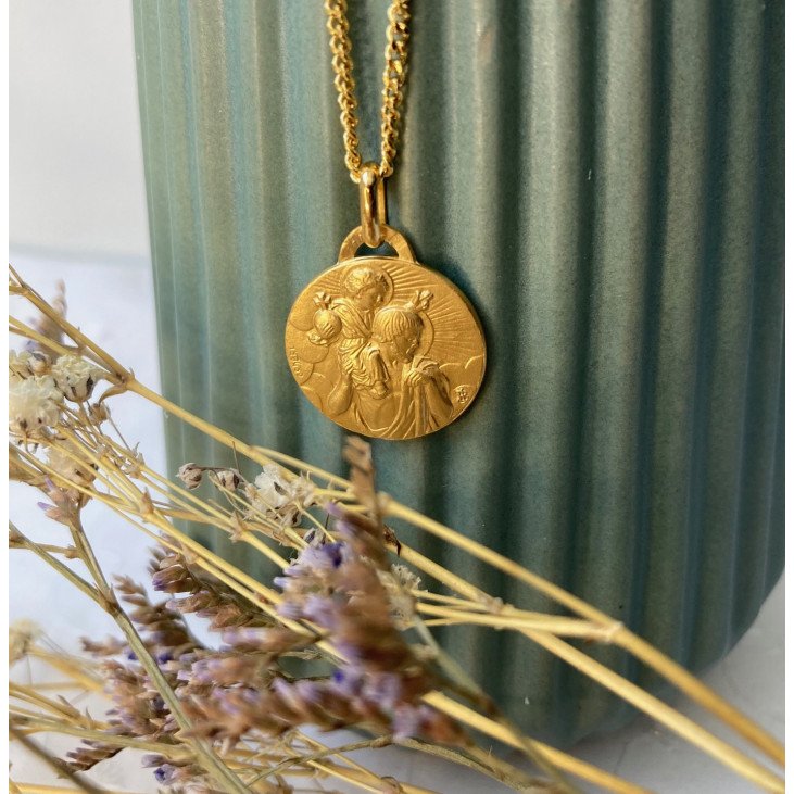 Saint Christophe étant le saint patron des automobilistes, n'hésitez pas à offrir cette jolie médaille Saint Christophe en portrait en plaqué or à quelqu'un qui prend souvent la route ! Cette médaille de 18 mm de diamètre peut être portée par un homme ou une femme.