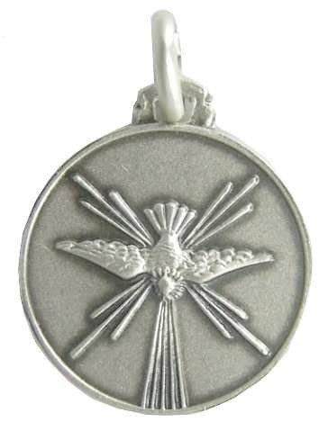 Médaille en argent massif 925 / 1000 avec gravure contrastée d'une colombe représentant l'Esprit Saint.