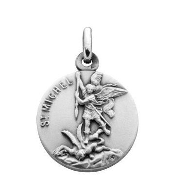 Admirez cette magnifique une médaille ronde en argent 925 / 1000 dont la gravure détaillée est à l'effigie de l'Archange Saint Michel terrassant le dragon. Il est représenté avec ses ailes et son épée, son pied gauche posé sur la tête de l'Antéchrist étendu sur le sol. Avec ses finitions de qualité, cette médaille sera un très joli cadeau pour vos proches ou vous-même.