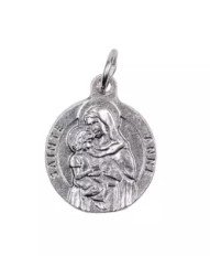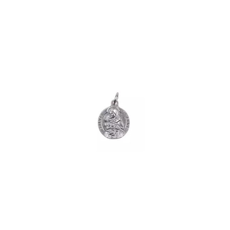 Médaille de Sainte Anne en métal argenté d'un diamètre de 18 mm.