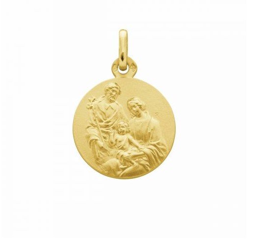 Cette médaille ronde de la Sainte Famille, d’un diamètre de 18 mm, est réalisée en or jaune 9 carats. Finement frappée, elle met en lumière les visages de Jésus, Marie et Joseph, modèle de tendresse et d’unité pour toute famille chrétienne. Elle trouve naturellement sa place dans les moments sacrés de la vie : baptême, confirmation, mariage ou anniversaire religieux.