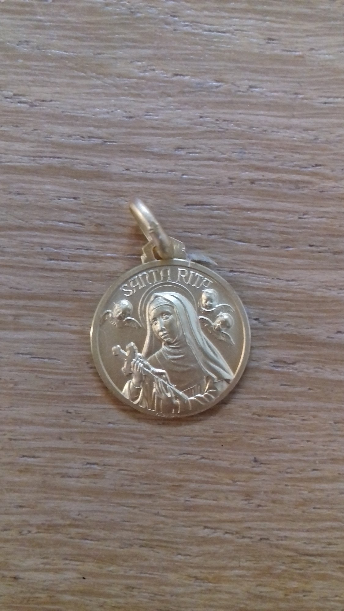 Médaille en plaqué or 18 Carats de sainte Rita, la sainte des causes difficiles.