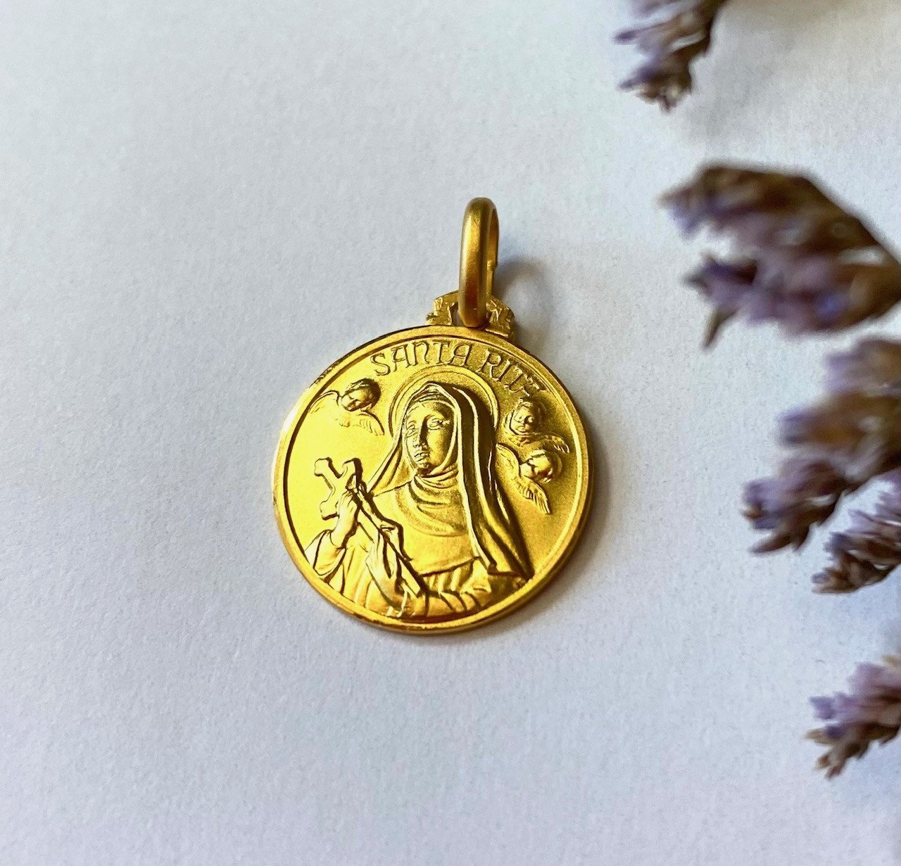Médaille en plaqué or 18 Carats représentant Sainte Rita, la sainte des causes difficiles.