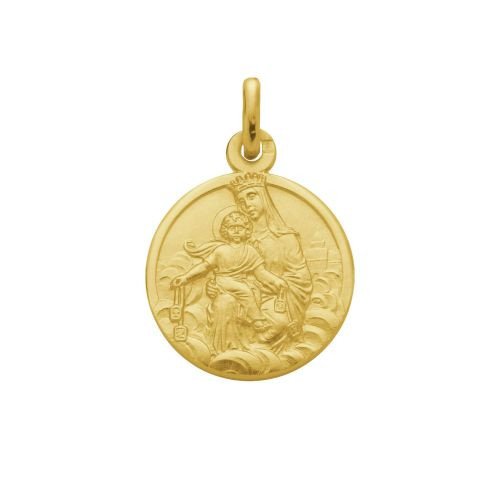 En plaqué or, cette belle médaille possède une face représentant le Sacré-Coeur de Jésus, en finition mate, avec un bord plat de 2 mm environ et une face représentant Notre-Dame du Mont Carmel, en finition mate avec un fin bord brillant contrasté sur la partie supérieure. Cette particularité en fait une médaille élégante, qui peut être portée au quotidien, sans craindre l'eau ou l'usure.