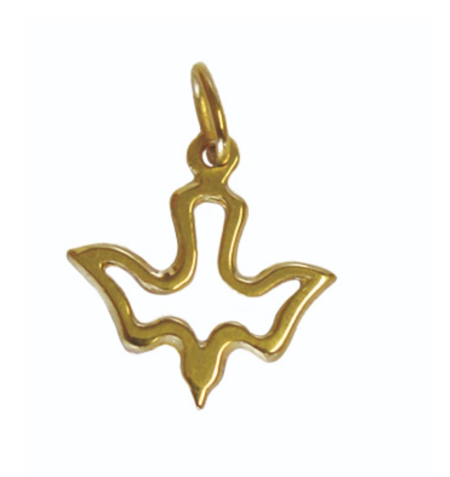 Découvrez ce beau pendentif en plaqué or représentant une colombe stylisée, un symbole puissant de l'Esprit Saint et de la paix. Finement travaillé, ce bijou délicat et intemporel incarne l'Esprit de Dieu et la le lien entre le ciel et la terre.