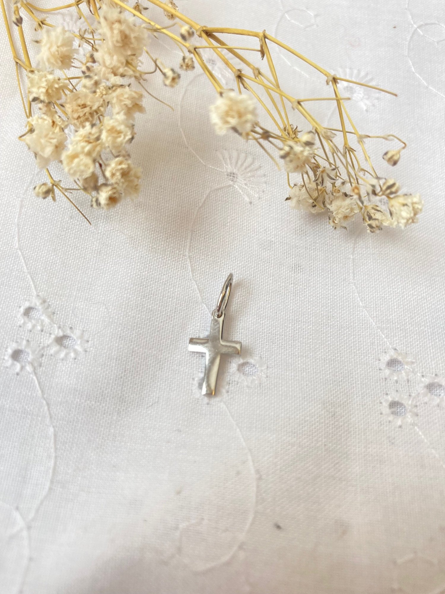 Jolie petite croix breloque en argent 925/1000e, de finition brillante.
