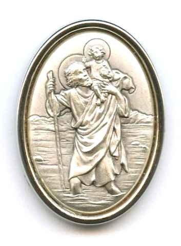 Plaque auto ovale aimantée (possibilité de coller la plaque en retirant la protection), représentant Saint Christophe, saint patron des voyageurs.