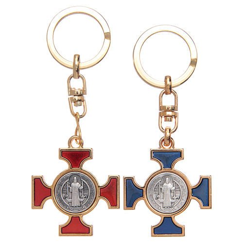 Magnifique porte-clés en croix de Saint Benoît, en métal doré.
