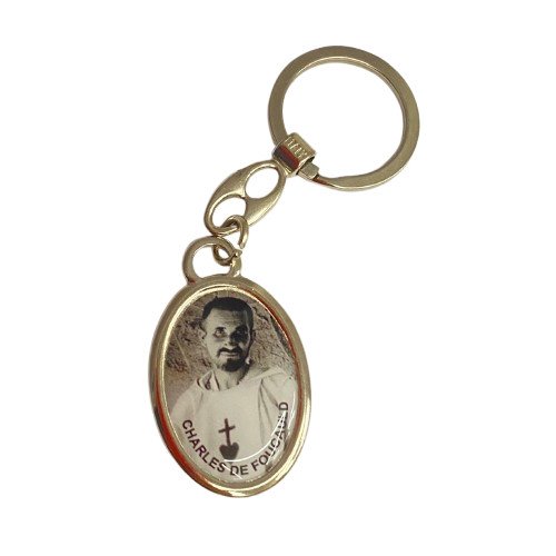 Ce porte-clés Saint Charles de Foucauld est en métal argenté et orné d'une belle médaille en résine ovale à l'effigie de ce grand saint d'aujourd'hui !