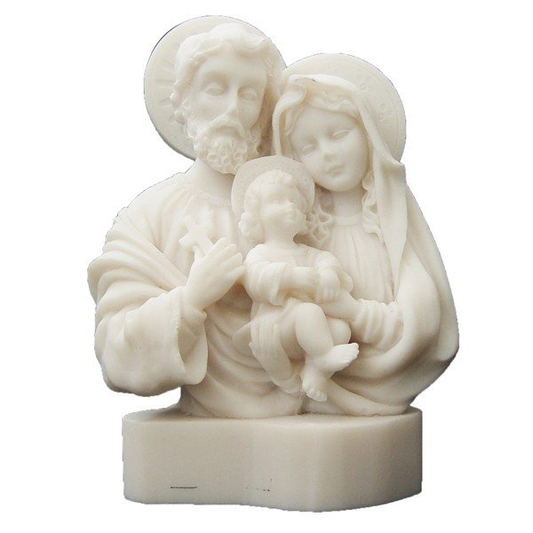 L'albâtre, une pierre naturelle reconstituée, fait de ce buste de la Sainte Famille un bel objet pouvant être disposé à l'intérieur de chez vous aussi bien qu'à l'extérieur.