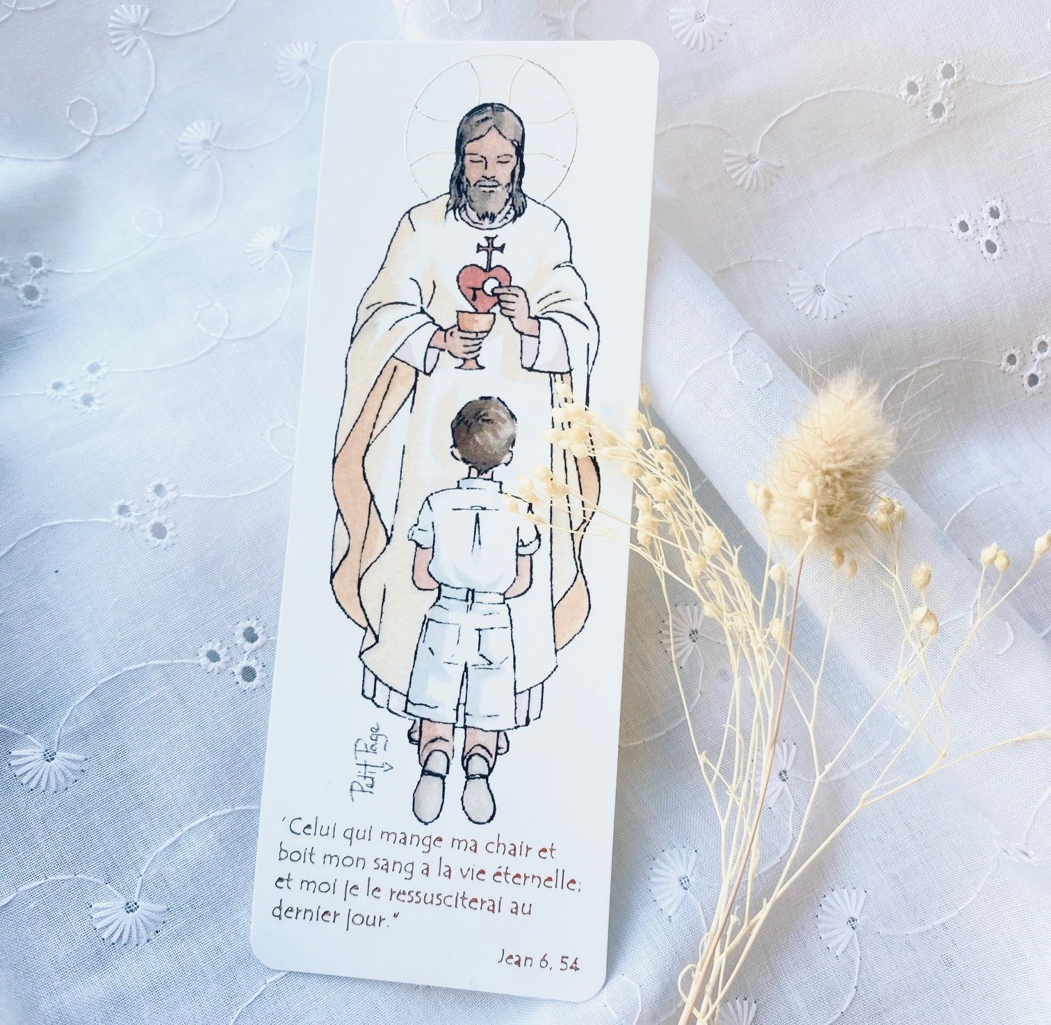 Ce signet de Première Communion, illustré par Petit Page, sera un souvenir précieux de ce jour sacré pour votre enfant et vos proches.