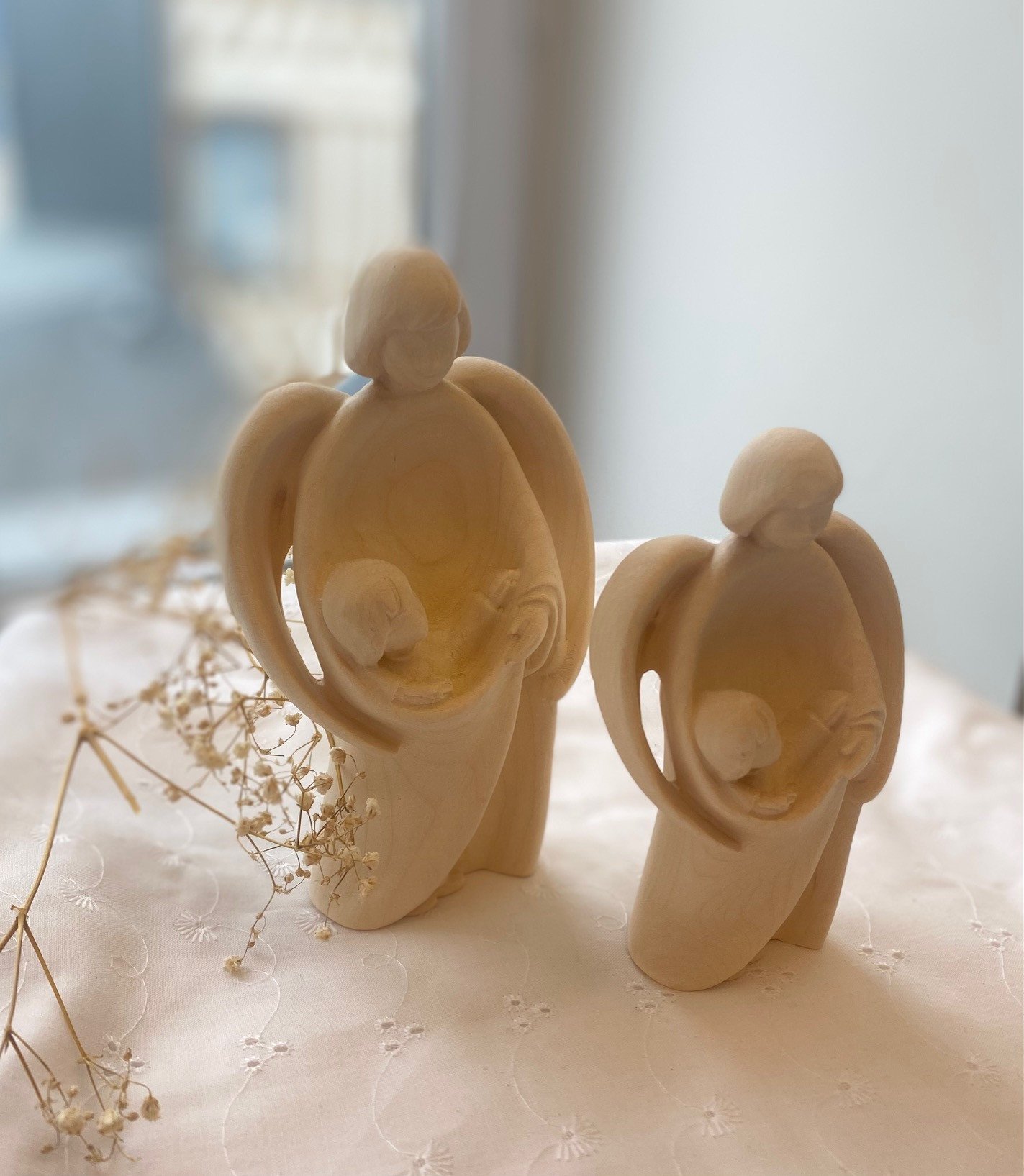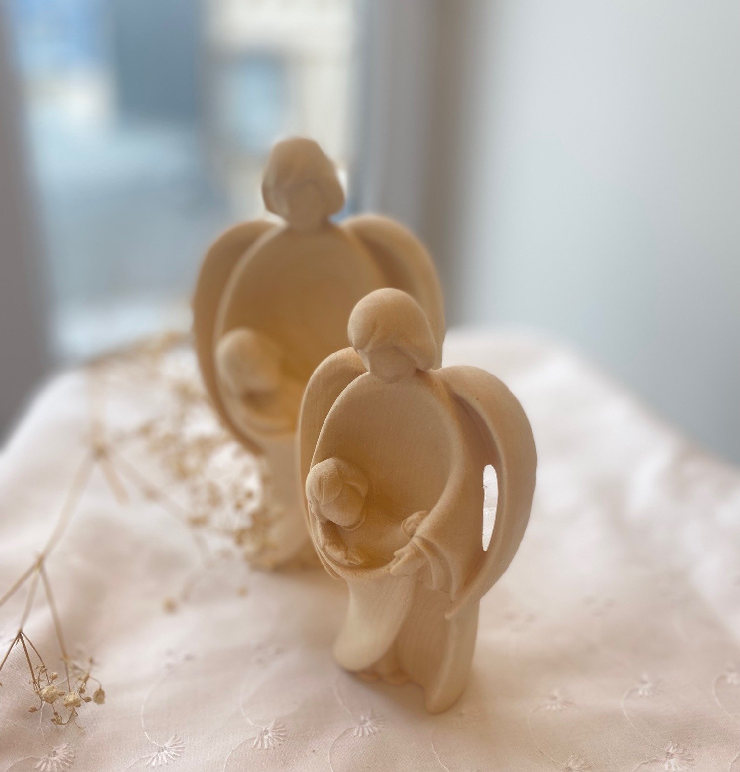Nous vous proposons la statue de l'Ange gardien en bois d'érable naturel en plusieurs dimensions : attention certaines tailles ne sont pas en stock et demandent un délai de commande :