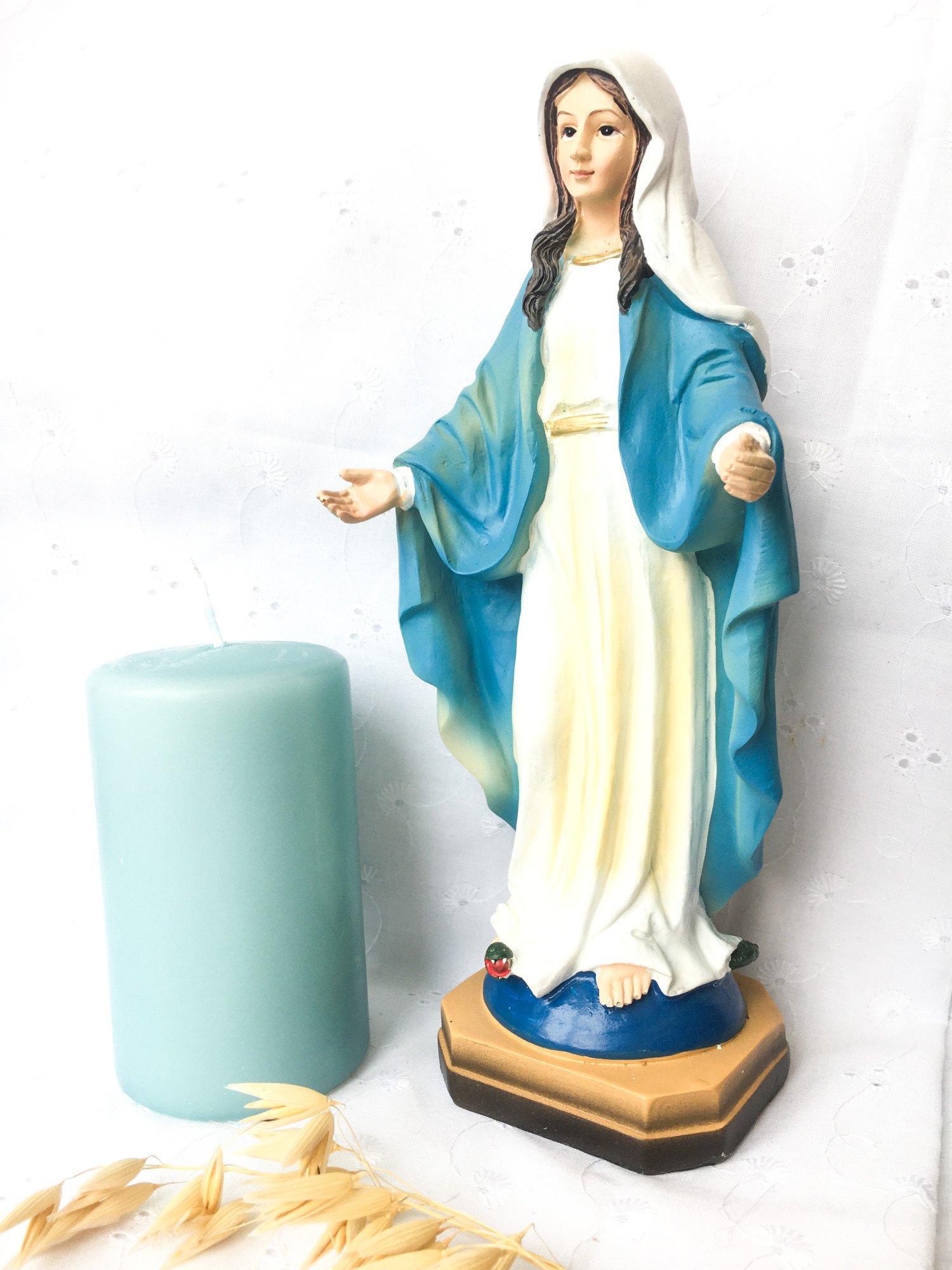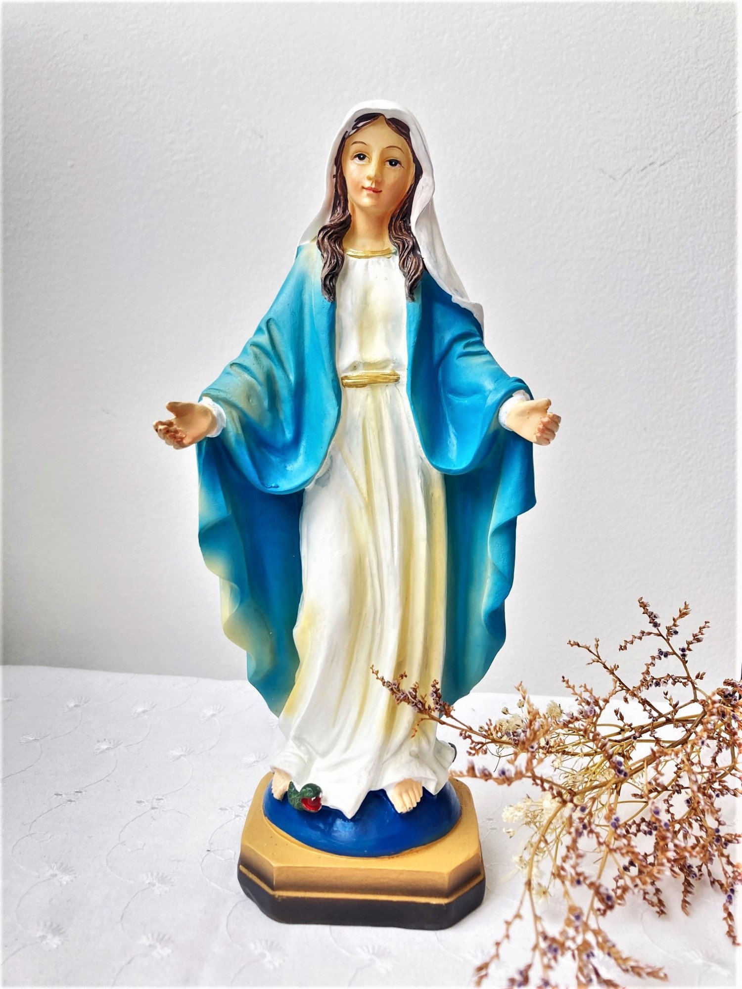 Découvrez cette jolie gamme de statue en résine peinte à la main, représentant la Vierge Miraculeuse.