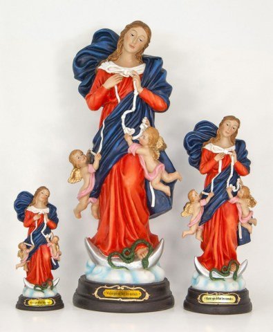 Statue en résine peinte, de Marie qui défait les noeuds.