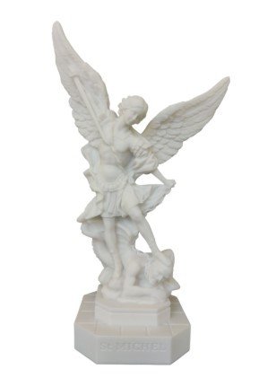Admirez cette statue de Saint Michel en Albâtre blanc !