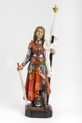 Très jolie statue en résine de Sainte Jeanne d'Arc, en résine, peinte à la main.