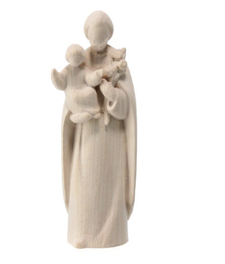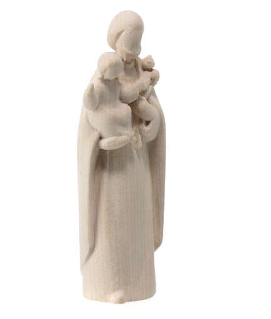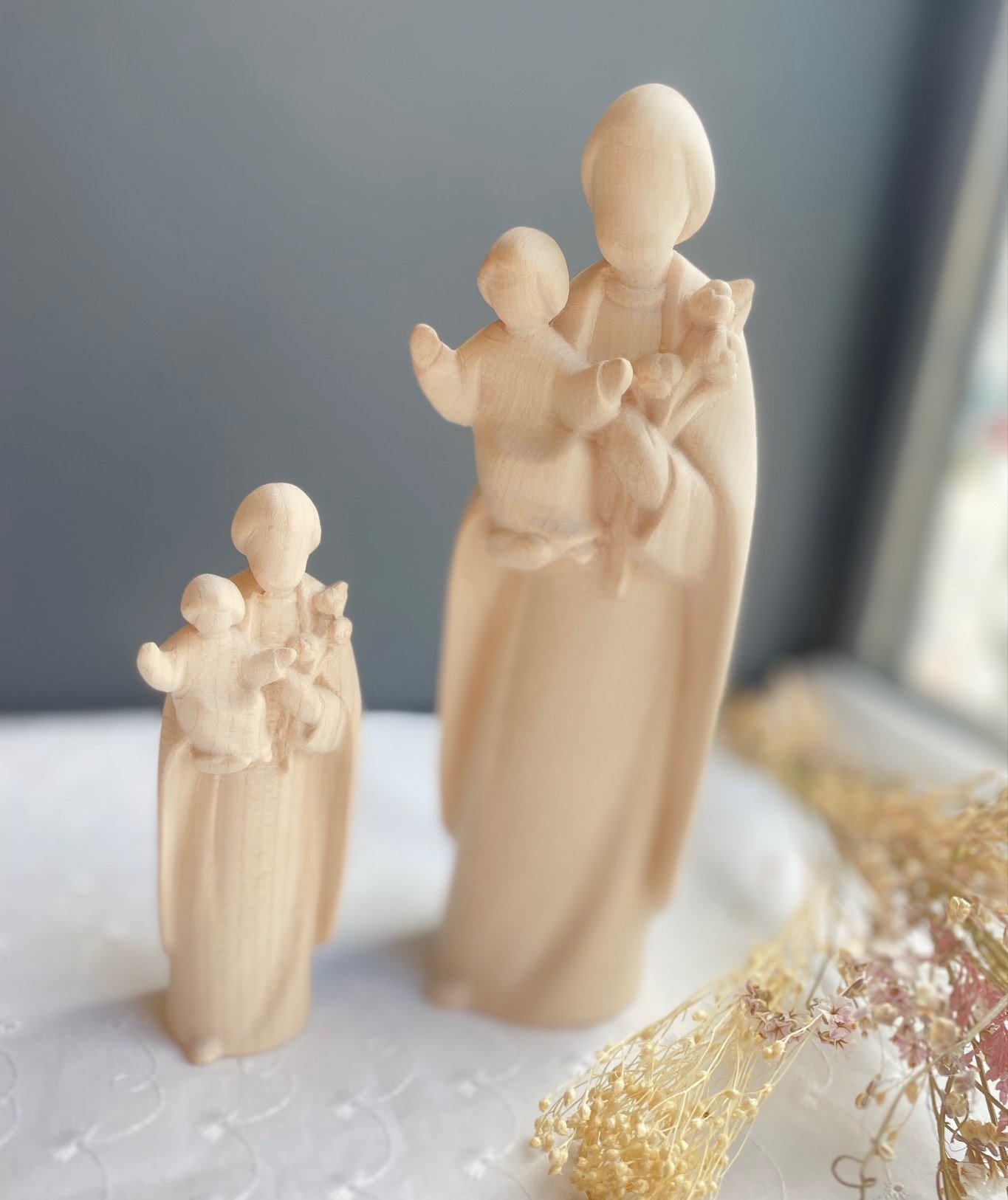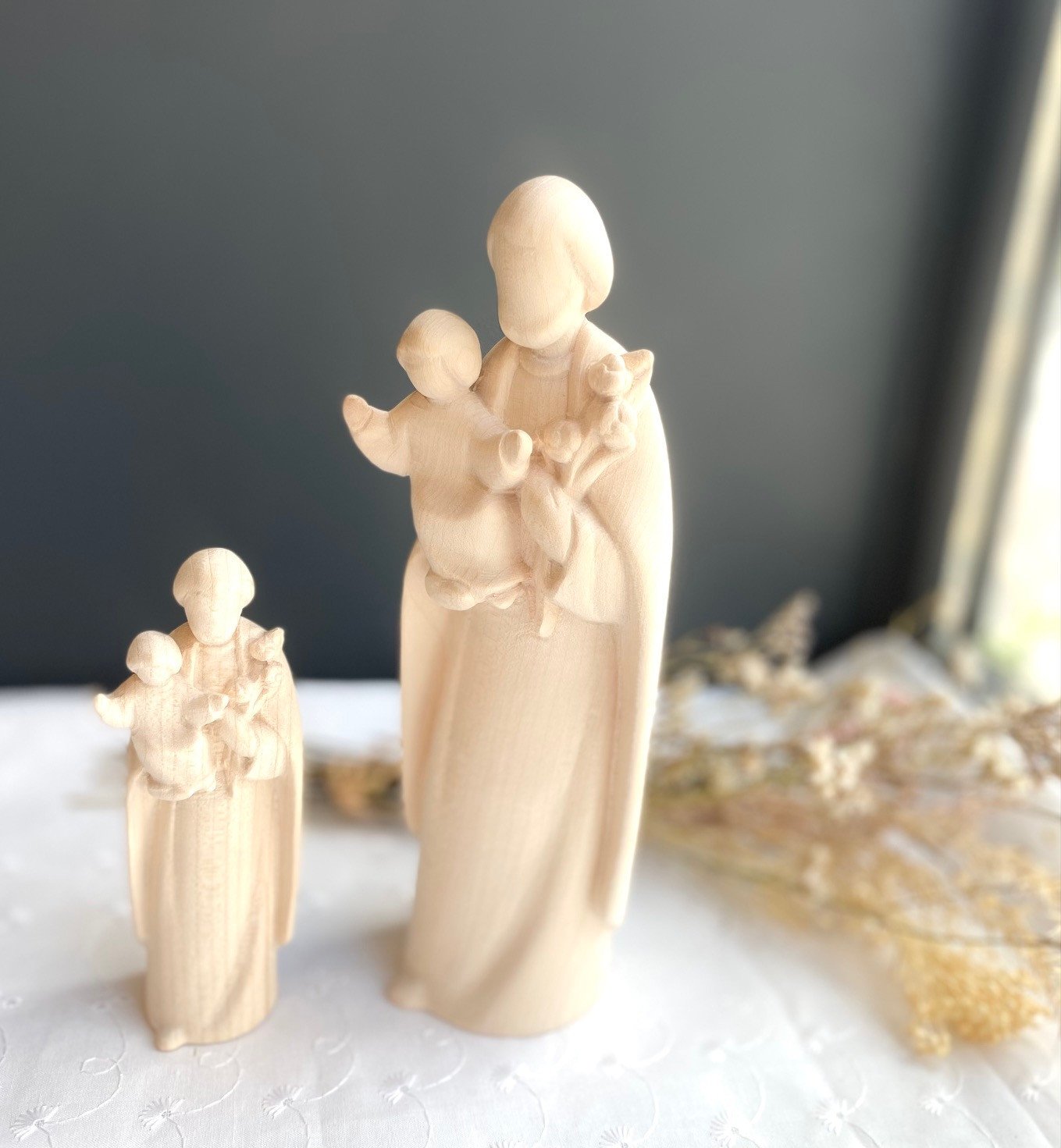 La facture moderne et stylisée de cette statuette toute en rondeur, et le choix du bois d'érable naturel très clair en font un objet d'une grande douceur qui conviendra à merveille pour orner votre oratoire, votre coin prière ou toute autre pièce de votre maison.