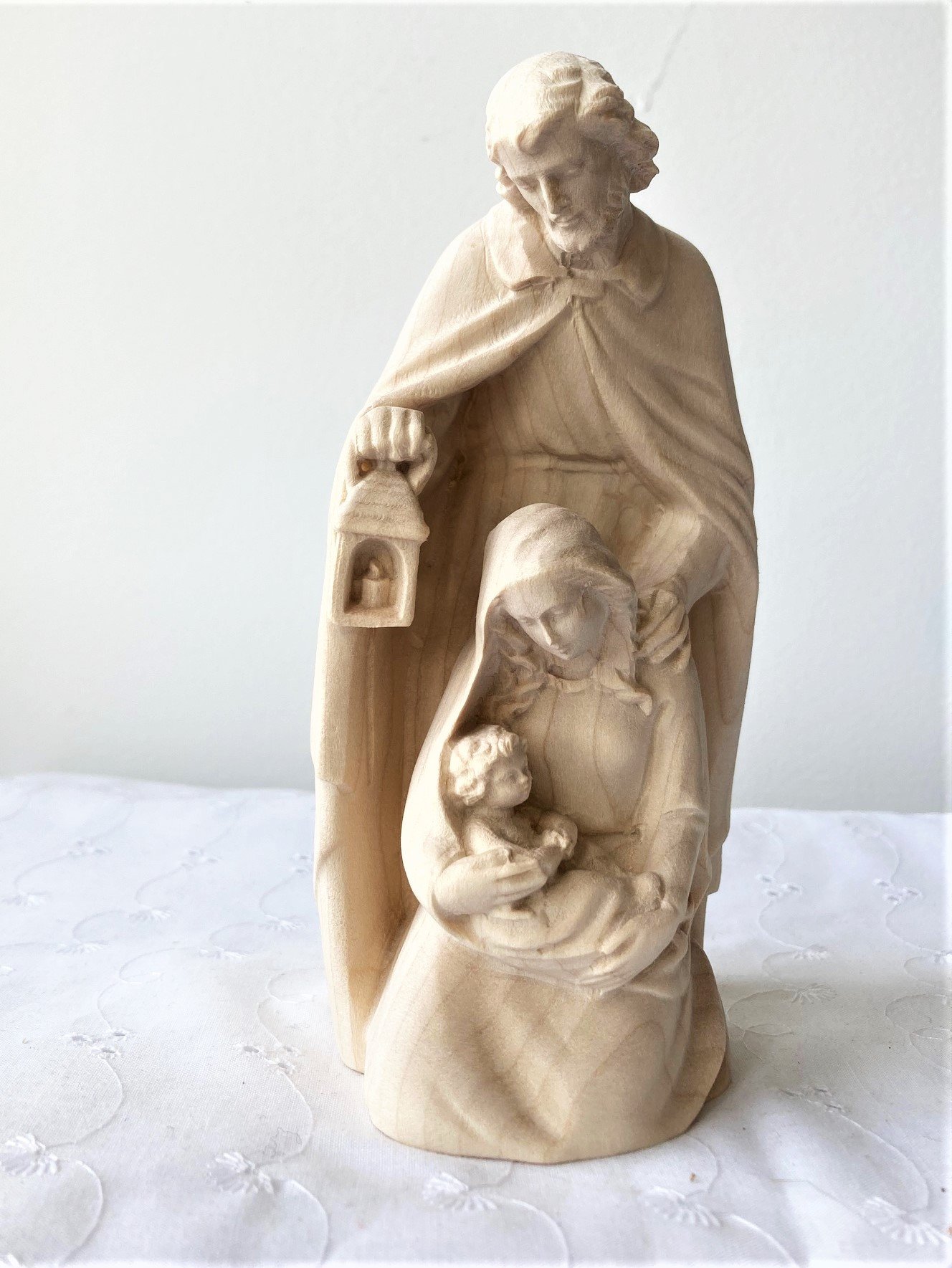 Statue Sainte Famille à la lanterne - bois naturel